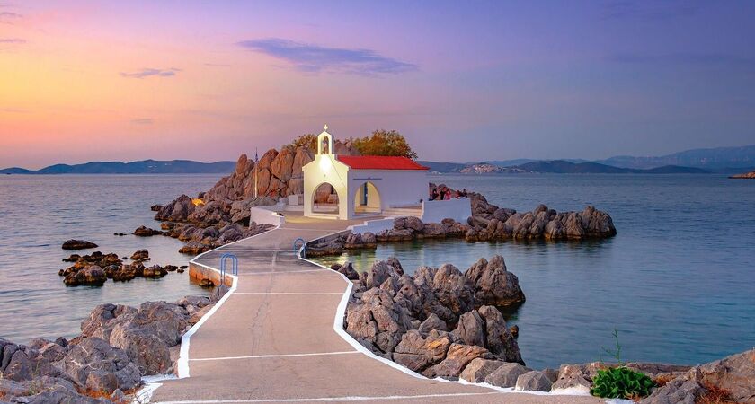 Dönüş yolunda, Sakız Adası’nın simge yapılarından biri olan ve denizin üzerinde yer alan Agios Isidoros Kilisesi’nde fotoğraf molası veriyoruz. Rivayete göre damla sakızının bu azizle ilişkilendirildiği anlatılmaktadır.