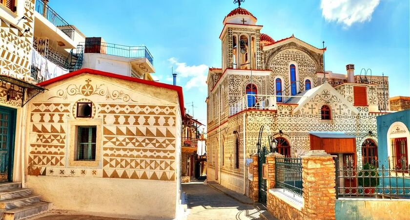 Sonrasında geometrik desenli evleriyle ünlü Pyrgi Köyü’ne geçiyoruz. “Ksista” adı verilen özel süsleme tekniği hakkında rehberimizden bilgi alıyoruz.